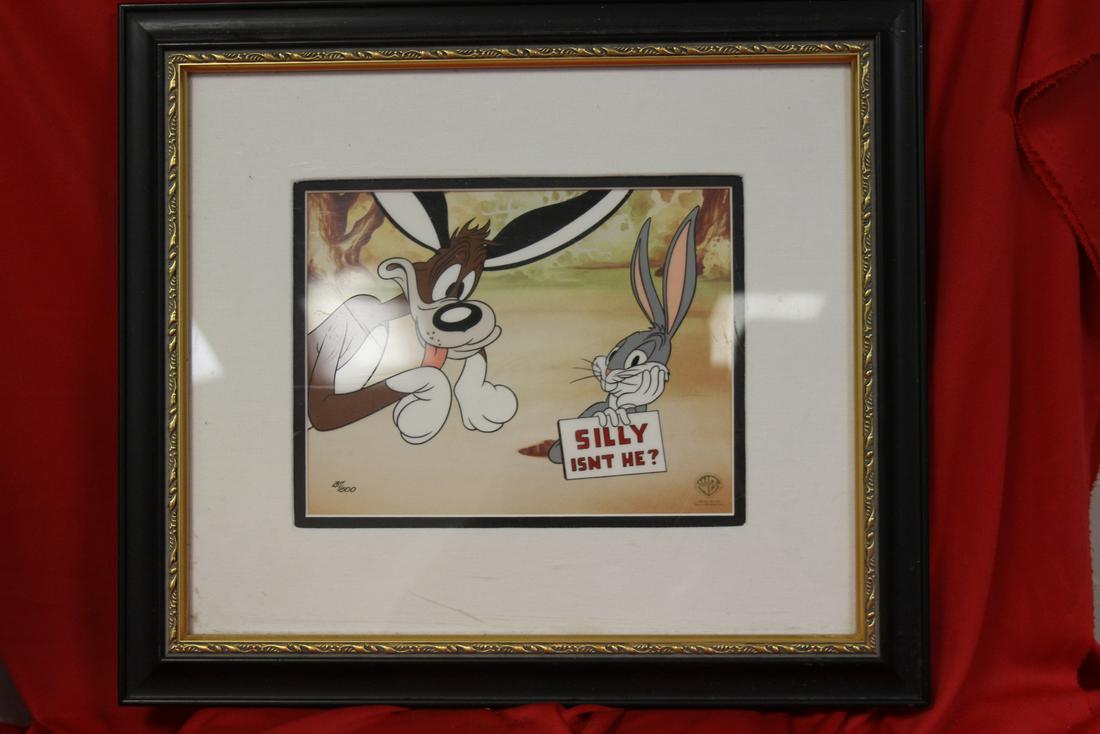 Bugs Bunny certified Carrtoon CelStamped and certified limited Edition Warner Brothers Cartoon Cell. Measures height 19 inches by 22 inches.See Sold Price