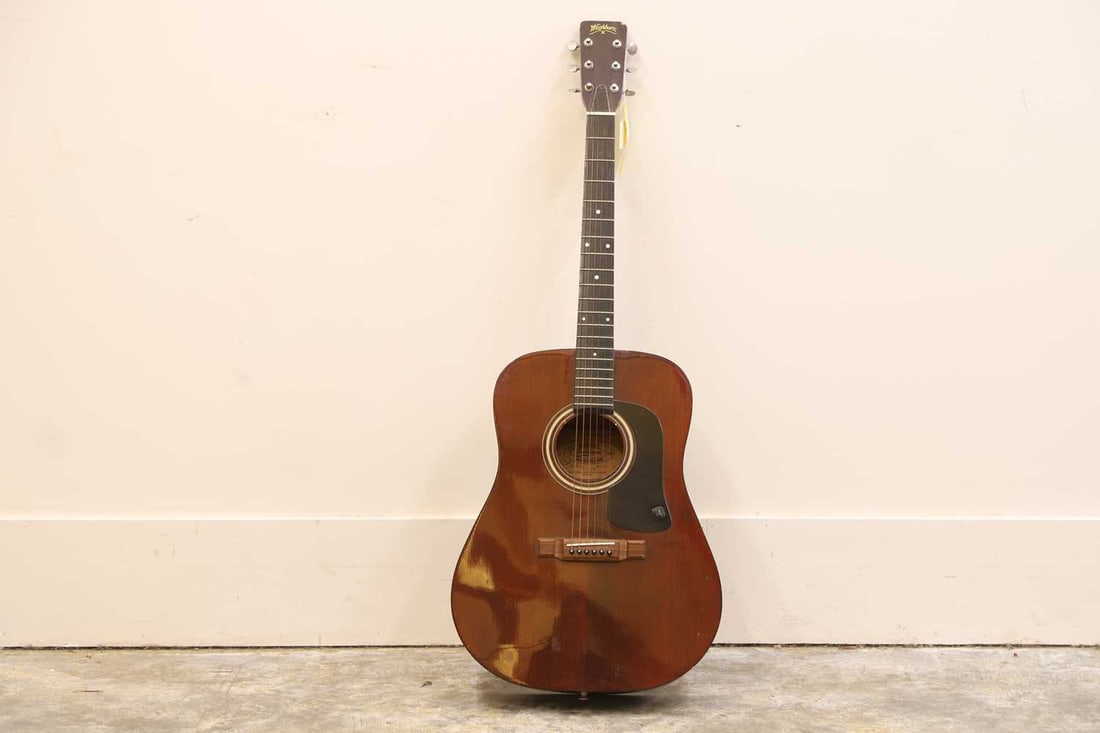 A Washburn six string acoustic guitar,