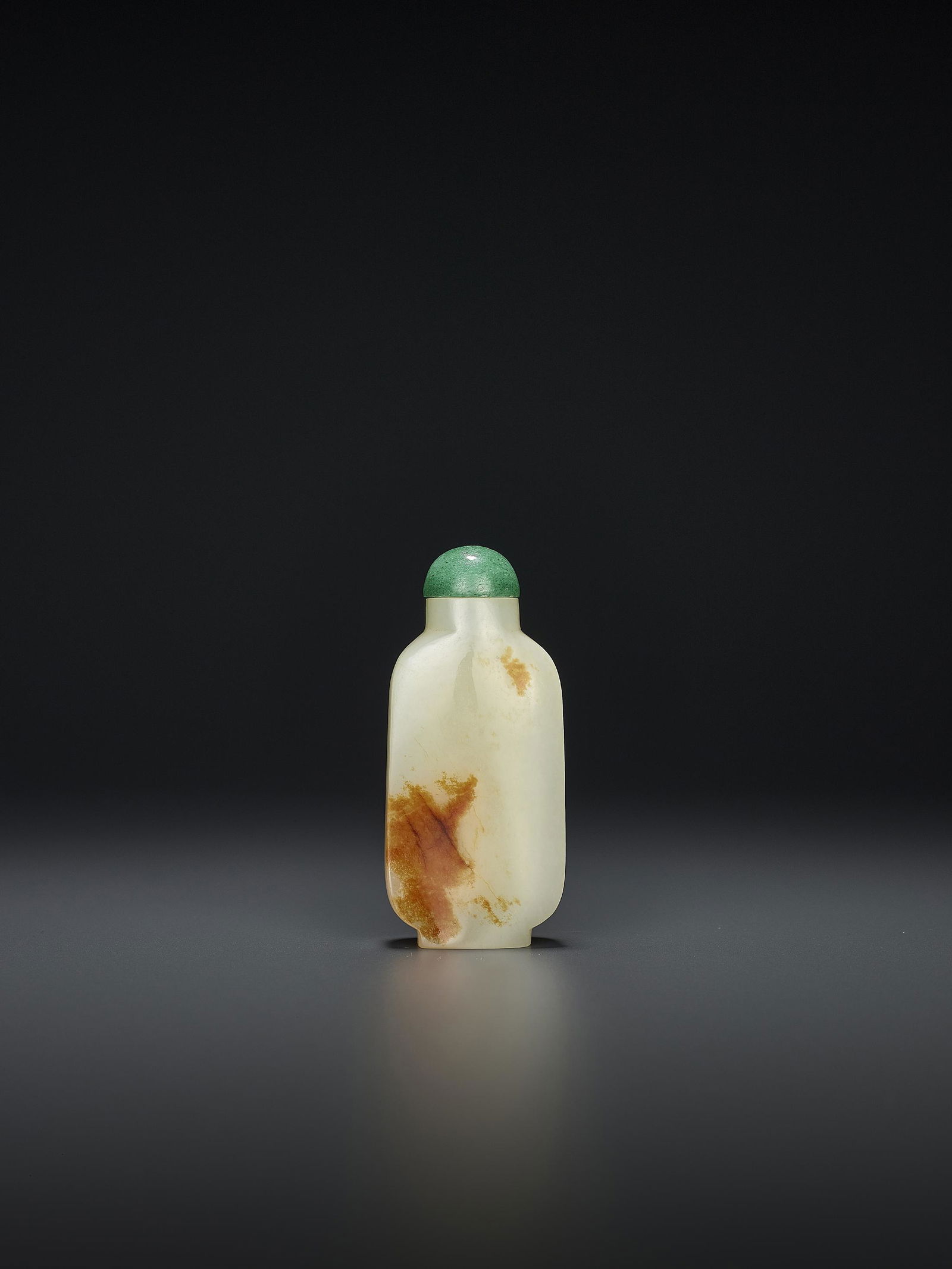 A WHITE AND RUSSET JADE SNUFF BOTTLE