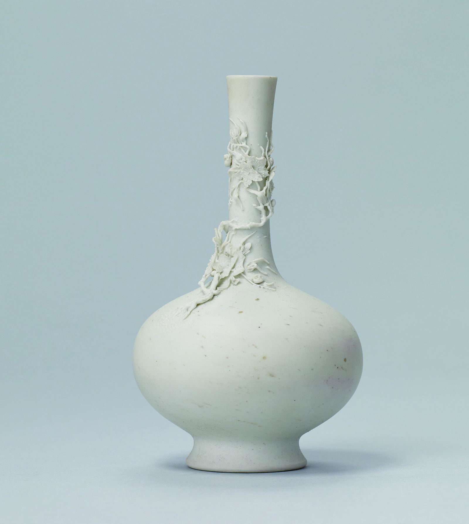 A WHITE BISCUIT PORCELAIN BOTTLE VASE