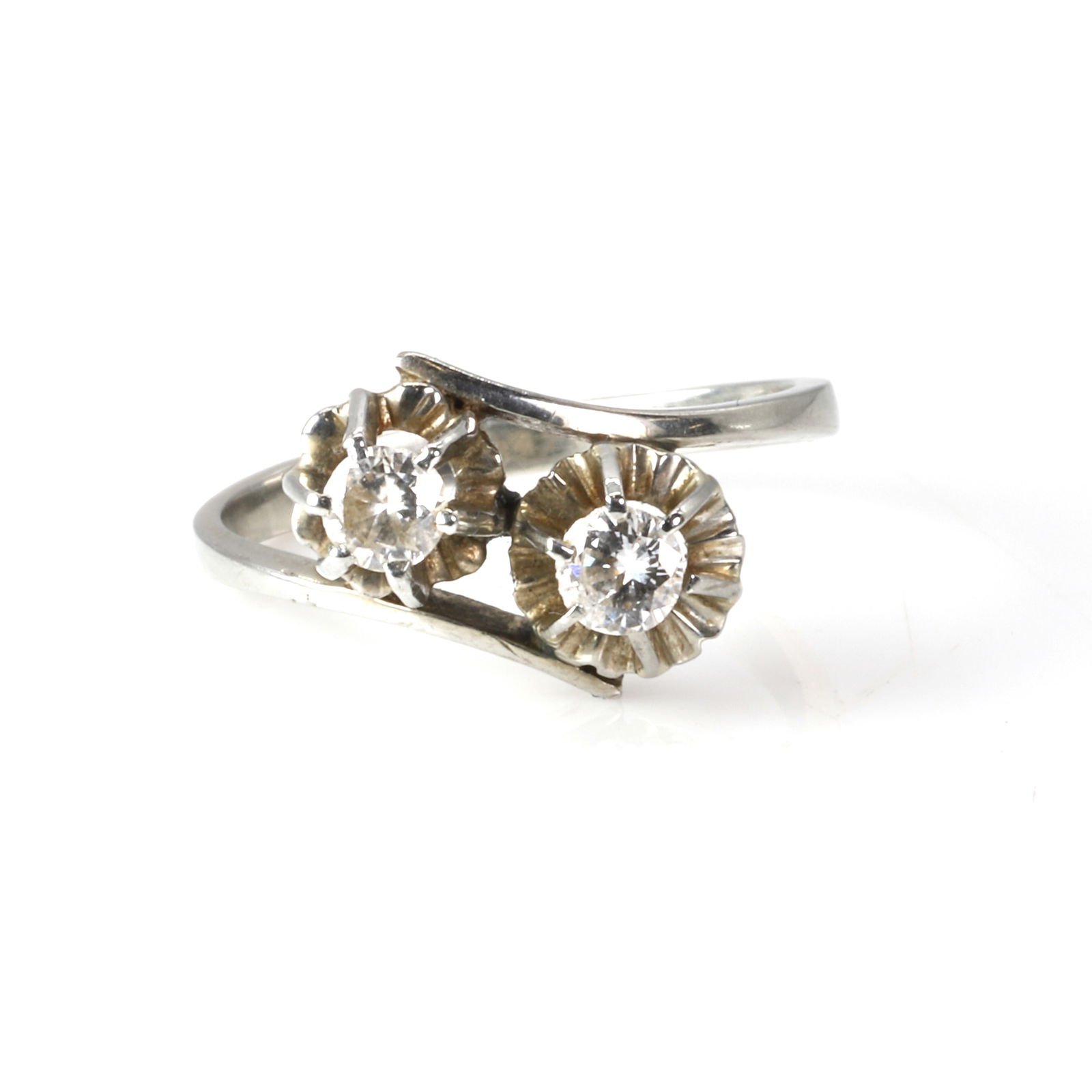 A white gold diamond two stone ring,