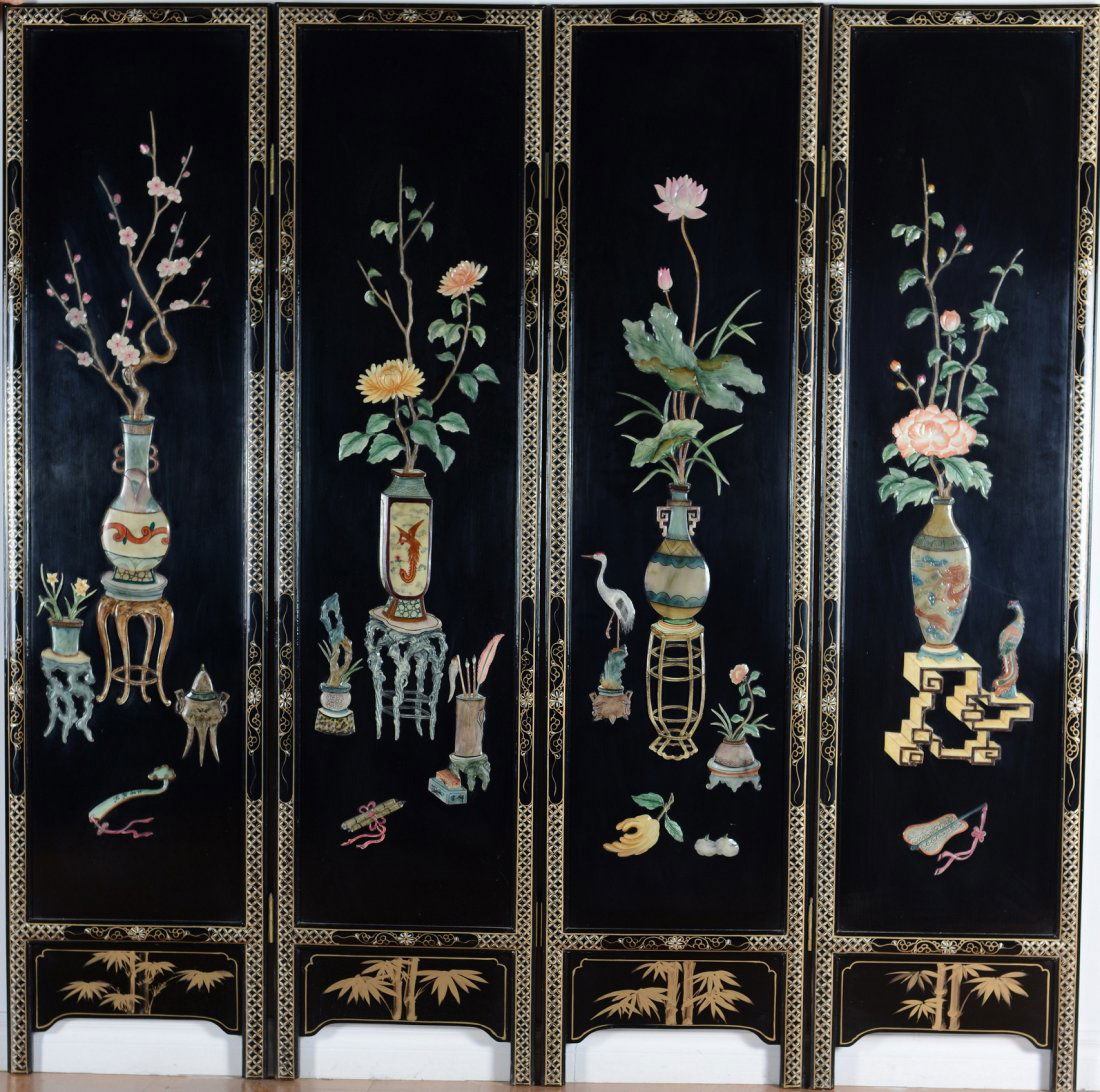 Chinese Mother of Pearl Inlaid Hardwood Panels2 days LeftCHINESE FOUR PANEL LACQUERED SCREEN, 19TH C.Feb 24, 2026Set of Three Chinese Black Lacquer Wall Panels with Stone InlayFeb 26, 2026CHINESE LACQUERED COROMANDEL PANELS WITH BONE INLAYFeb 21, 202696" Tall Vintage Oriental Lacquer ScreenMar 04, 2026Antique Chinese 4 Panel Hardstone Screen1 day LeftA Hardstone inlaid 'figures' eight panel hardwood screenFeb 22, 2026CHINESE BLACK LACQUER 4 PANEL SCREENMar 07, 202696" Tall Vintage Oriental Lacquer ScreenJul 05, 2025Four Panel Black Lacquer Room Divider / ScreenMar 07, 2026Vintage Chinese Soapstone Lacquered for Wall PanelsMar 07, 2026Three-panel screenFeb 26, 2026A set of porcelain panel paintings of the four famous buildings of "Zhang Zhitang" of the EightFeb 28, 2026Four sandalwood hanging screens inlaid with colorful seashells depicting plum blossoms, orchids,Feb 21, 2026Rosewood Folding Screen Four Seasons Flowers MotifFeb 22, 2026Chinese Four Screen PanelFeb 26, 2026