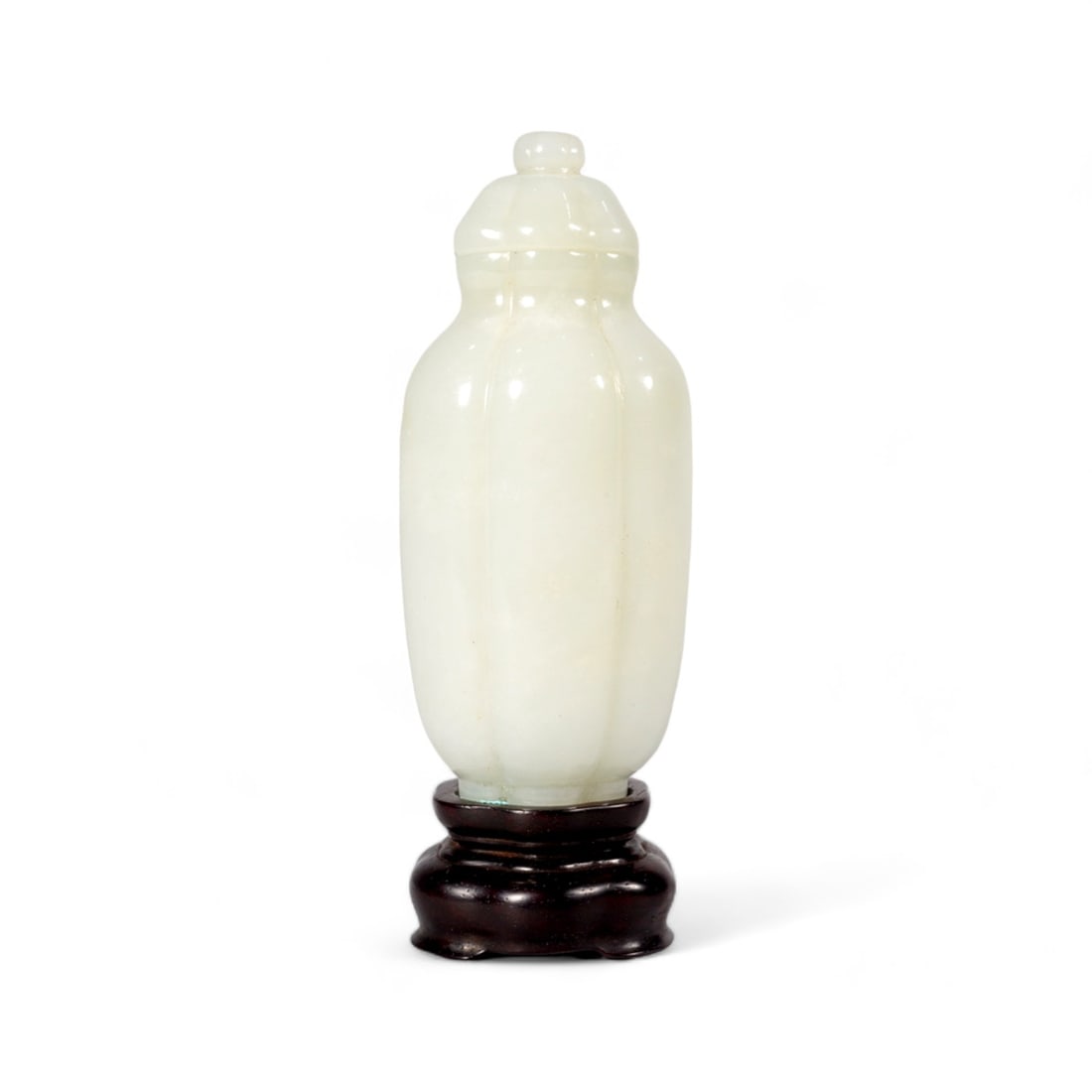 A WHITE JADE MELON-SHAPED VASE