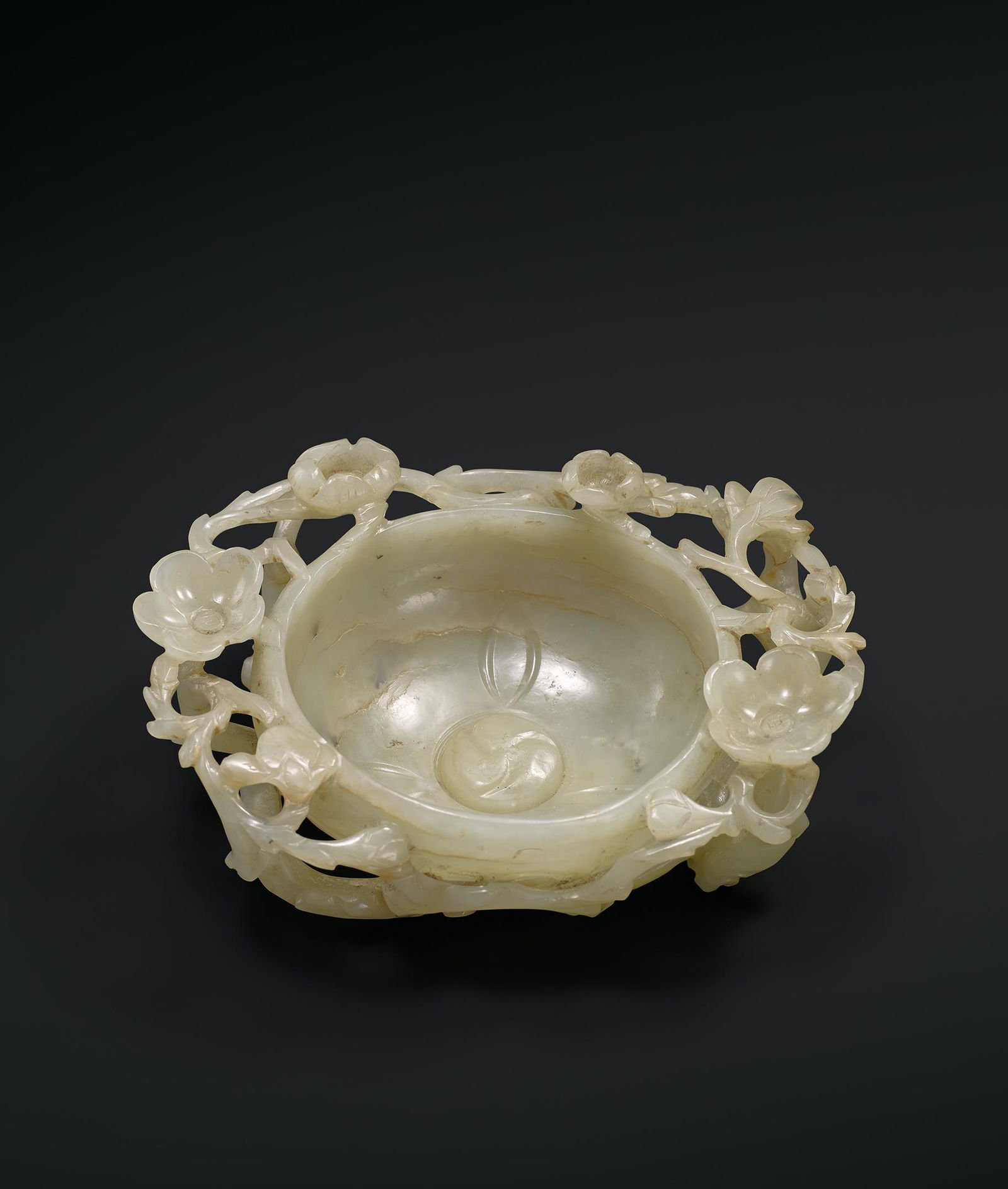 A White Jade Openwork 'Prunus' Washer, Ming Dynasty