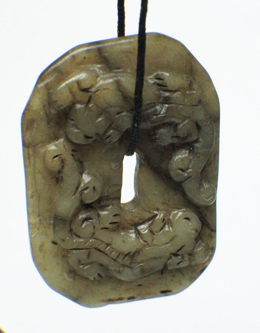A WHITE JADE SQUARE PENDANT WITH ANIMAL PATTERN FROM