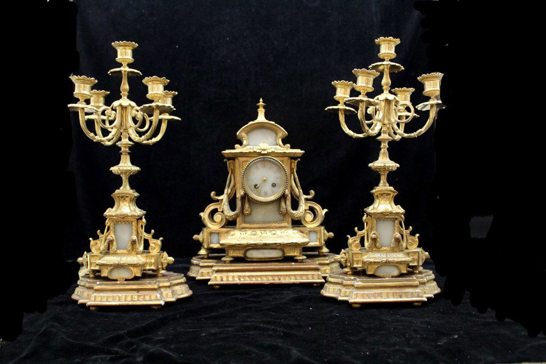 (3) FRENCH LOUIS XVI STYLE ORMOLU-MOUNTED MARBLE CLOCK & CANDELABRA GARNITURE SETAustin Auction Gallery4.7(1.2k)$1,50014 hrs Left