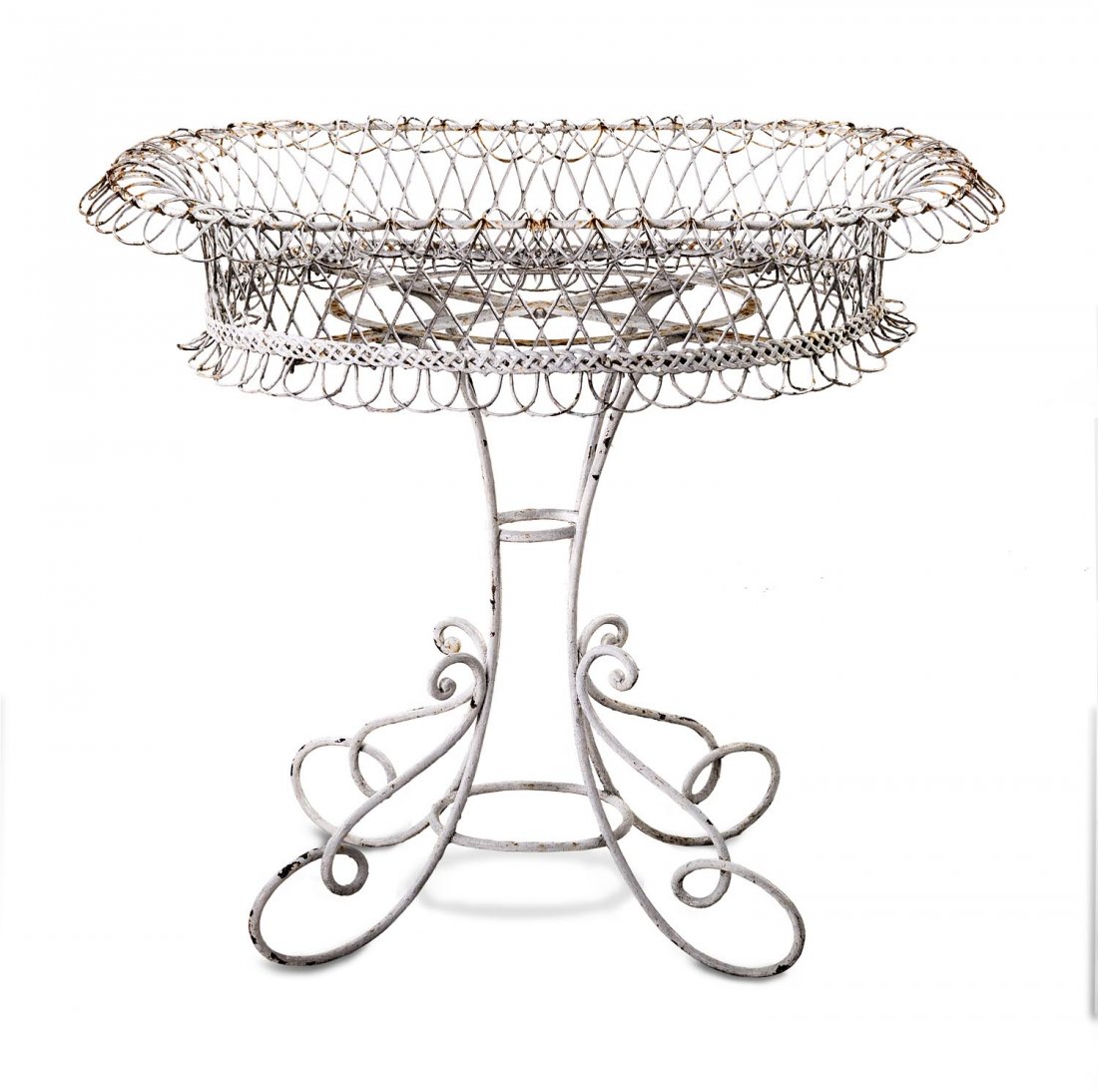 A White Painted Circular Wire Jardiniã¨re And Stand,