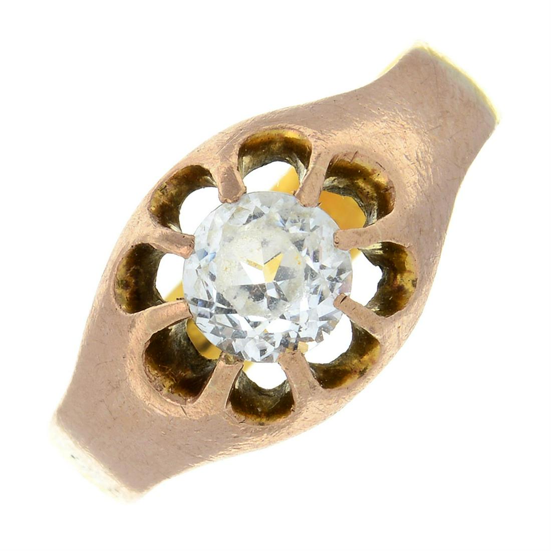 A white sapphire single-stone ring.