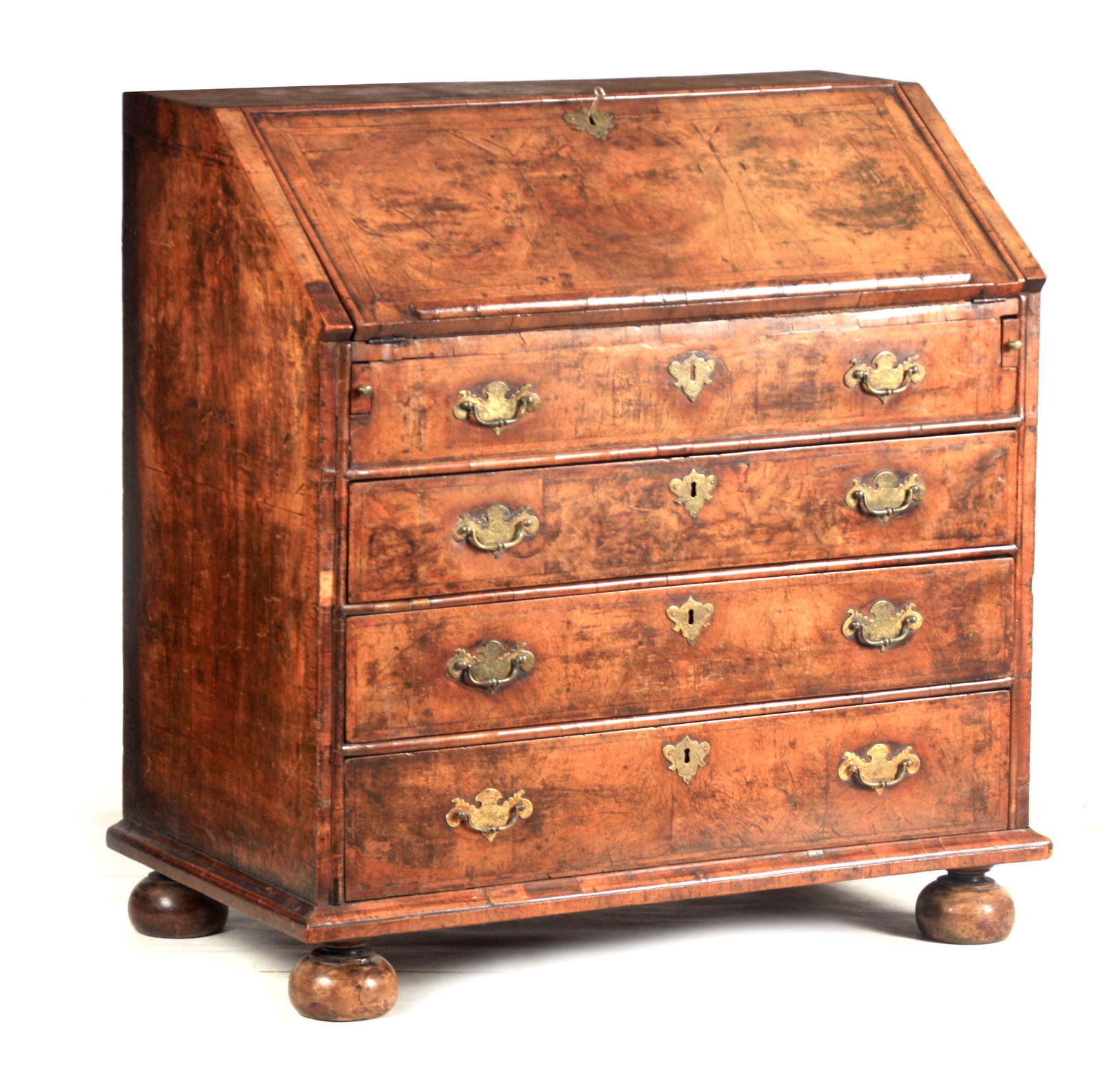 A WILLIAM AND MARY HERRING-BANDED FIGURED WALNUT BUREAU