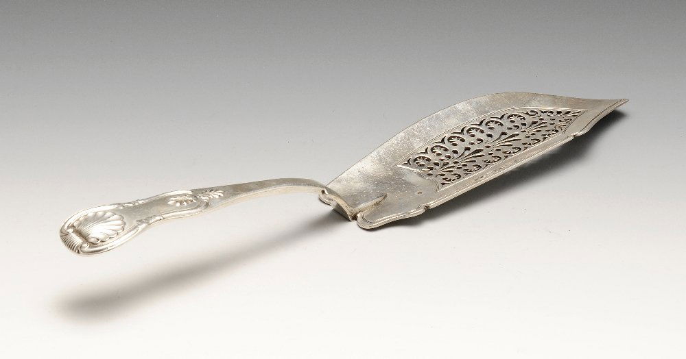 SoldA William IV silver fish slice, London 1835 by MaryA William IV silver fish slice, London 1835 by Mary Chawner, fiddle and thread pattern, 32.5 cm, 7 ozt.See Sold Price