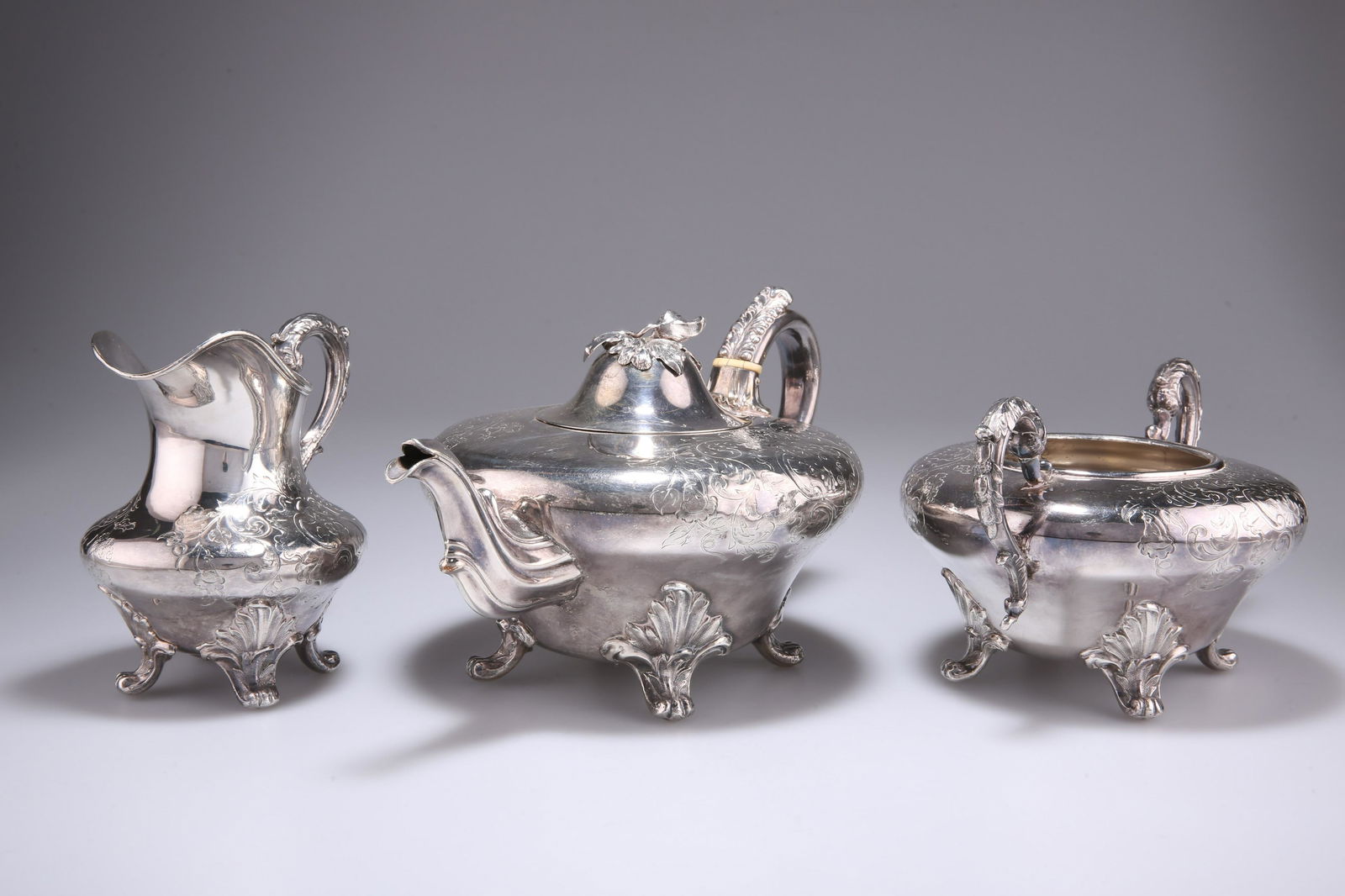 A WILLIAM IV SILVER-PLATED THREE-PIECE TEA SERVICE,