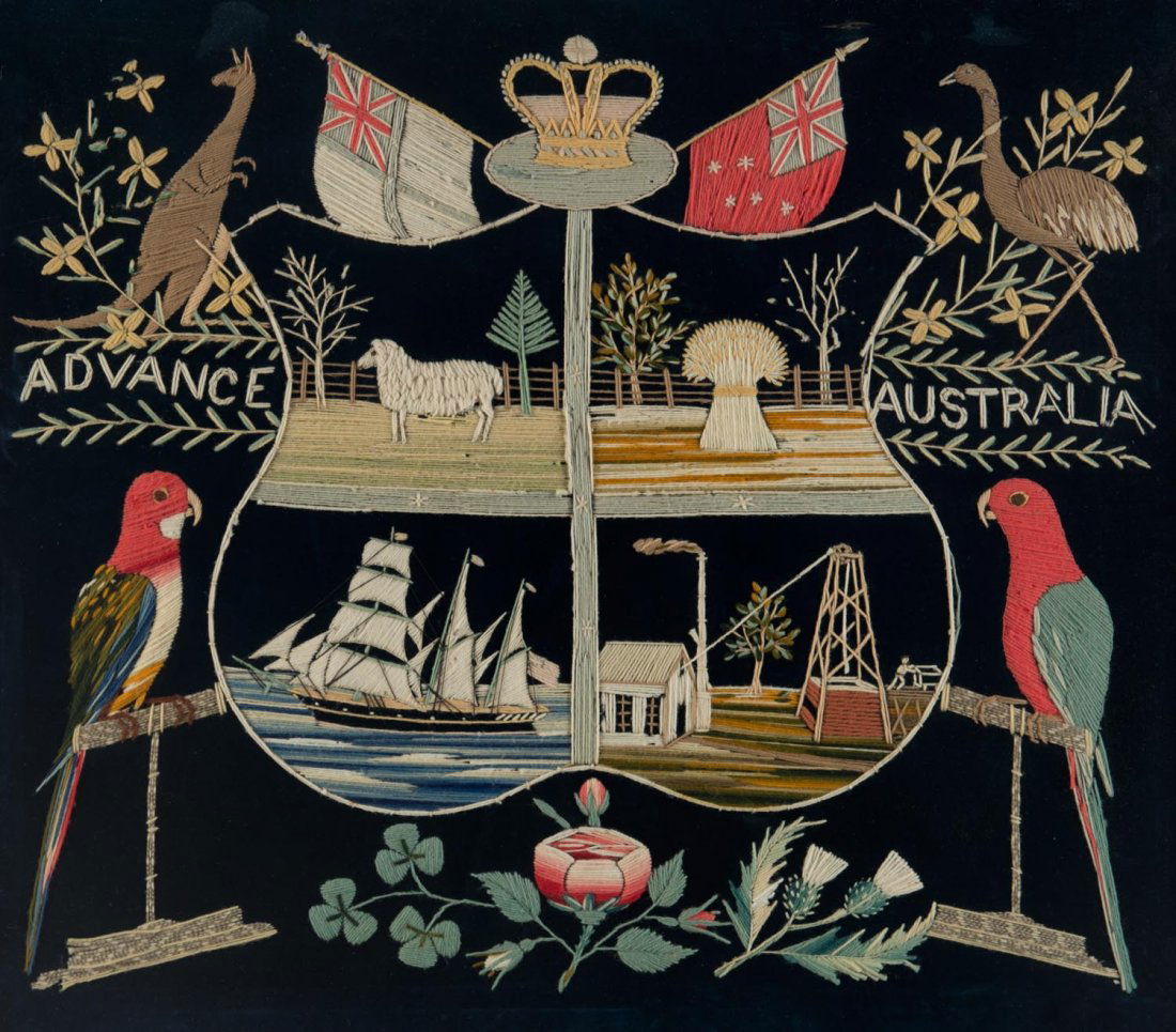 A wool work "Advance Australia" Australian Armorial