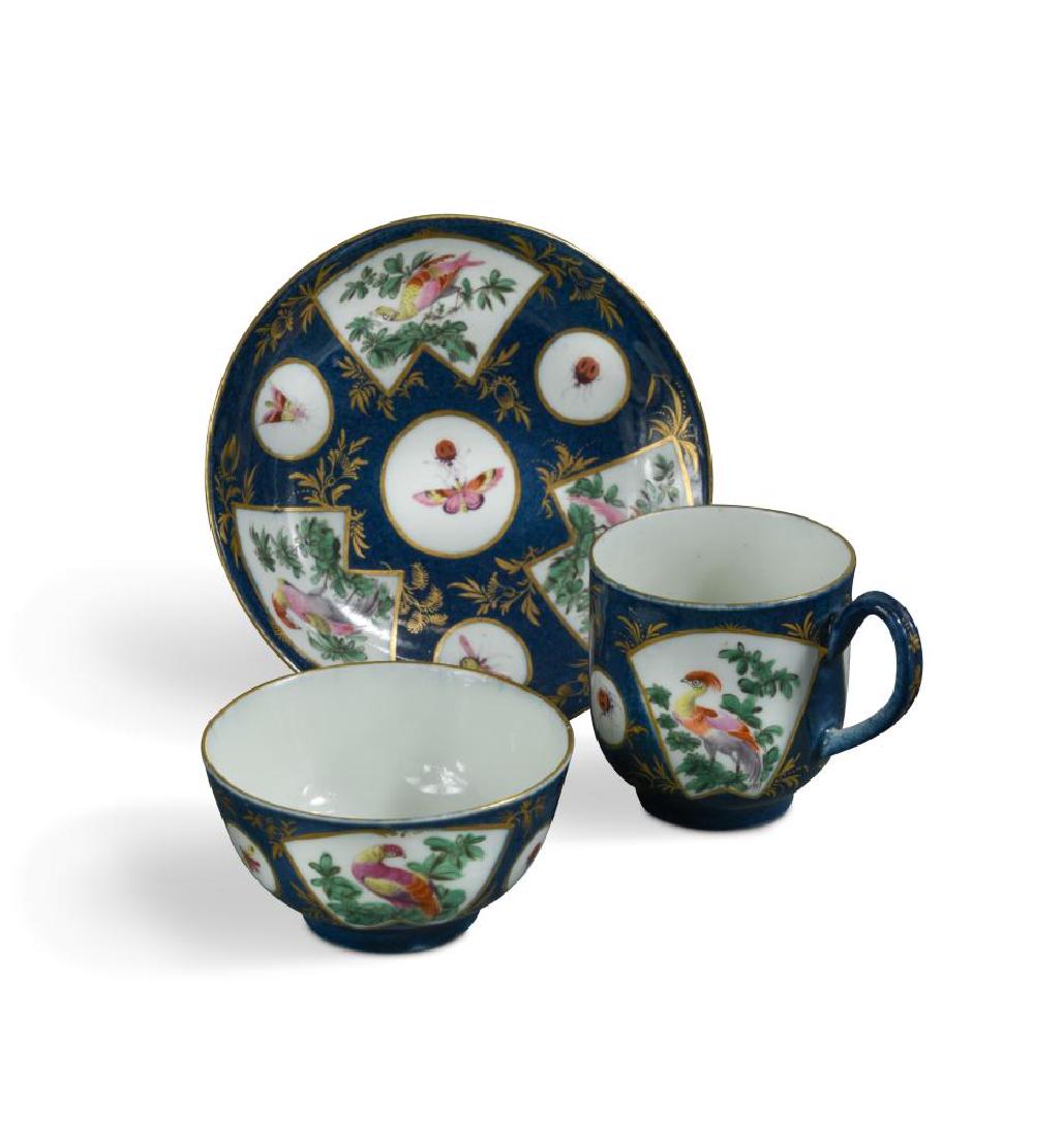 A Worcester blue scale ground trio, circa 1768,