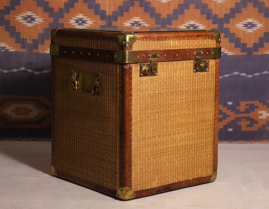 SoldAntique Boho Woven Bamboo TrunkAntique Boho Woven Bamboo TrunkMeasures 18 inches x 24 inches x 17 inches.See Sold Price