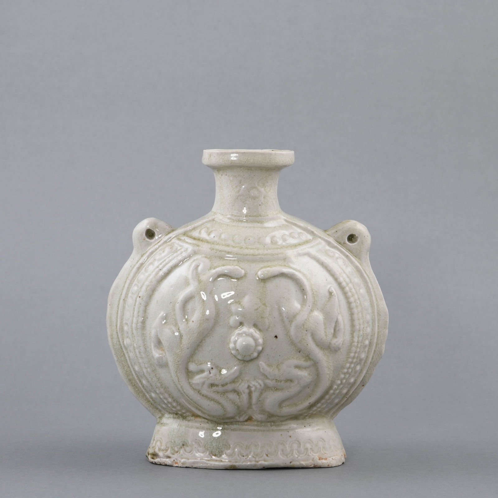 A 'XIANGZHOU' CELADON 'DRAGON' MOONFLASK