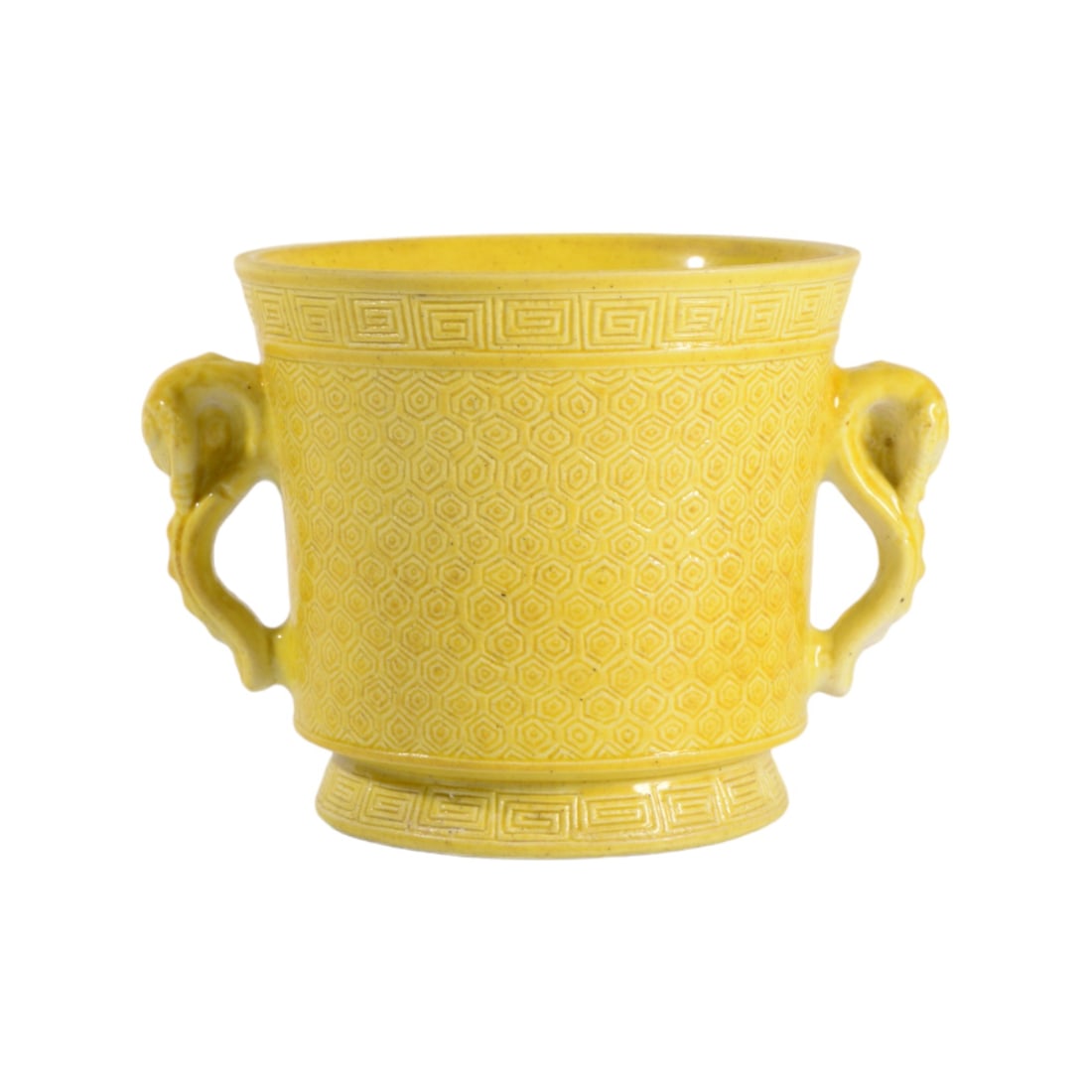 A YELLOW GLAZE CARVED CUP