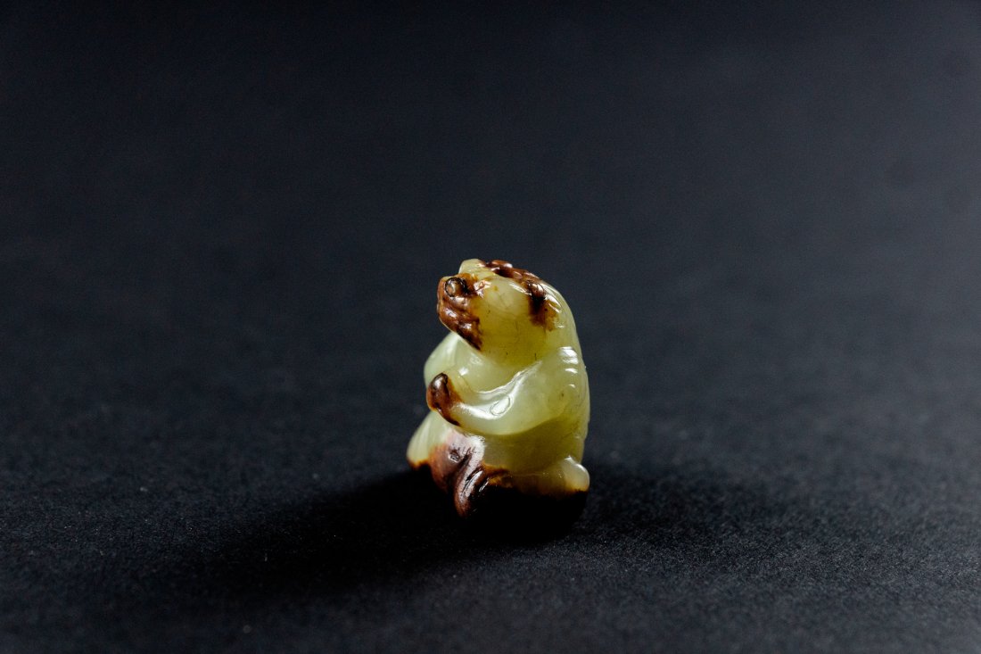 SoldYellow Jade Mythical Beast, Qing Dynasty205 清 黃玉瑞獸 L9.6cm 黃玉質,色澤溫潤雅致,凝光內斂。瑞獸See Sold Price