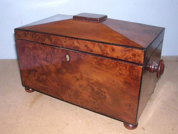 A YEW WOOD TEA CADDY