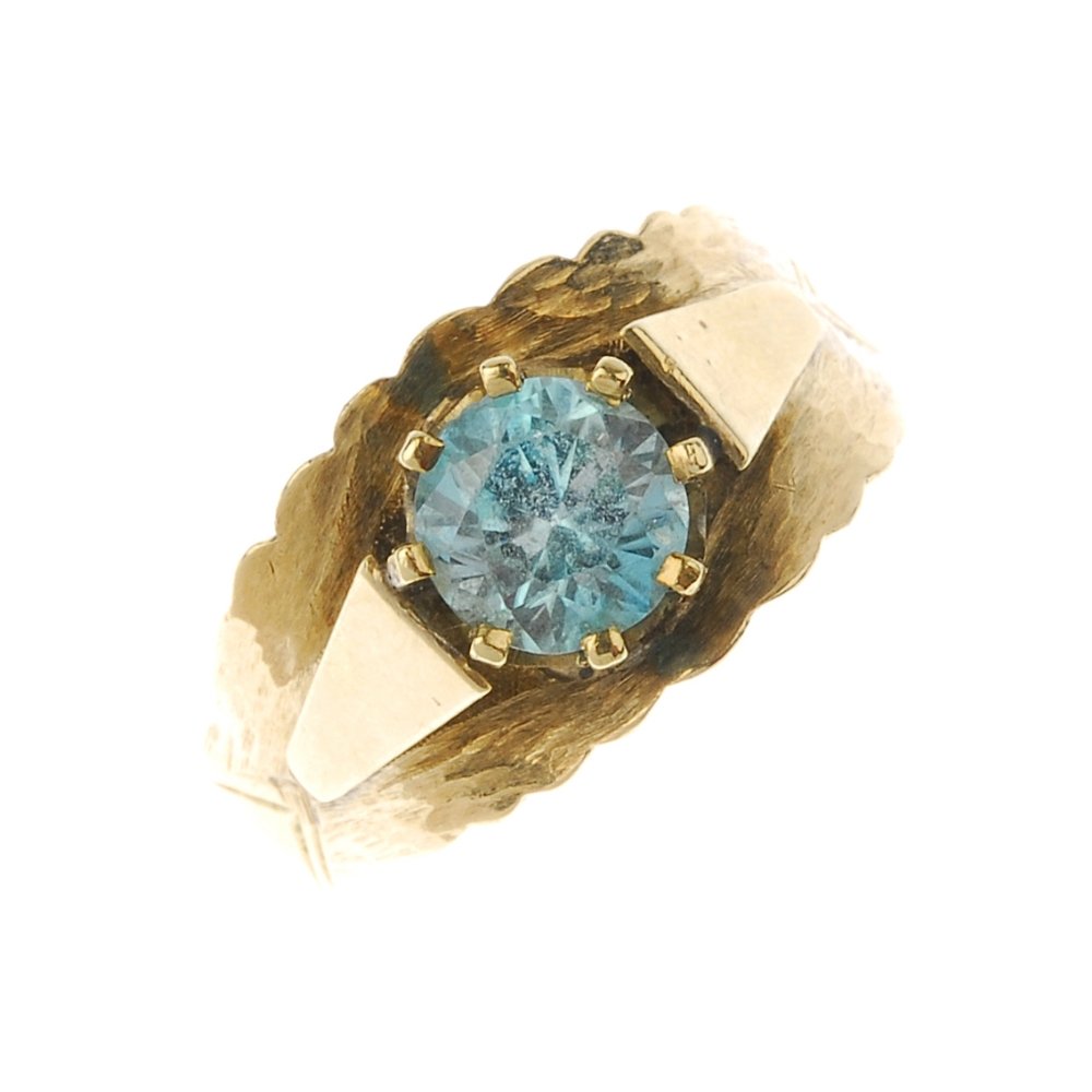 A zircon single-stone dress ring. The circular-shape