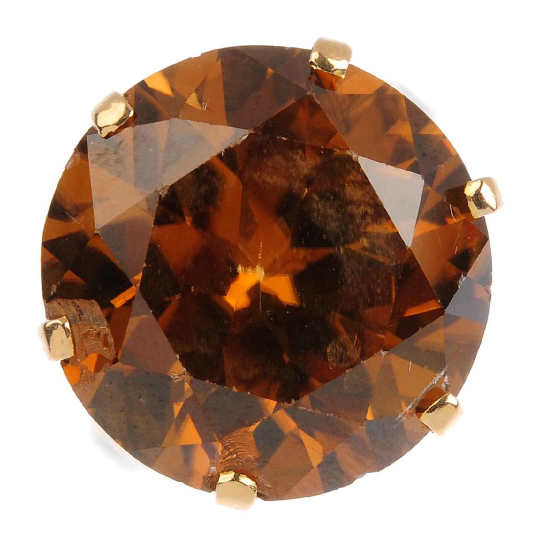 SoldAn 18ct gold cubic zirconia single-stone ring. TheAn 18ct gold cubic zirconia single-stone ring. The circular-shape cubic zirconia, with tapered shoulders. Hallmarks for London, 1972. Ring size Q. Weight 3.5gms.See Sold Price