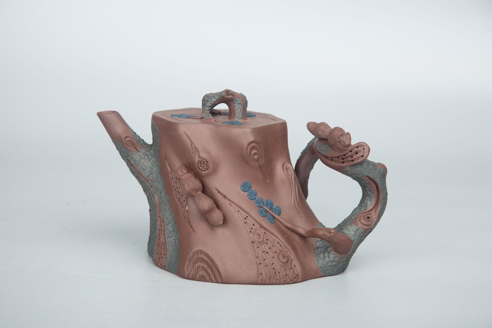 A ZISHA TEAPOT SHAPED LIKE TREE BRANCH