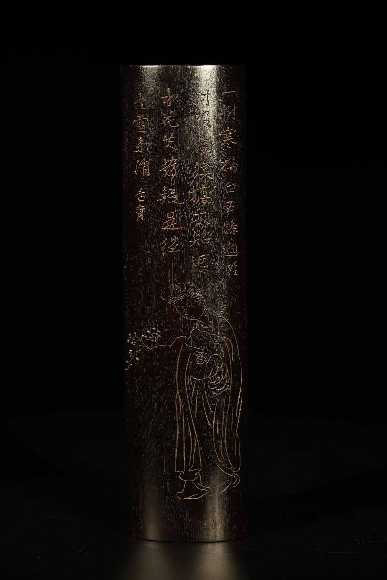 A ROSEWOOD CARVED WRIST REST WITH FIGURE AND BANANA LEAF DESIGN, QING DYNASTYMar 08, 2026A ZITAN WOOD CARVING PLUM BLOSSOM PATTERN ARMREST22 hrs LeftA CINNAMONWOOD ARMREST WITH ARHAT DESIGN3 days LeftA ZITAN WOOD CARVING FLOWER PATTERN ARMRESTMar 05, 2026A Qing Dynasty bamboo carved poetry armrestMar 21, 2026A ZITAN WOOD CARVING INSCRIBED POETRY BRUSH HOLDER22 hrs LeftQING DYNASTY, BAM-CARVED STUDY ARMREST4 days LeftA BAMBOO CARVING POETRY AND CALLIGRAPHY ARMRESTMar 07, 2026A beautiful bamboo carved character story armrestMar 14, 2026An Exquisite Zitanwood Character and Story Pattern Incense TubeMar 21, 2026A BAMBOO CARVED ARMREST WITH "SENIOR OFFICIAL UNDER PINE TREE" MOTIF3 days LeftA Chinese Carved Bamboo Armrest (Bi Ge) with Flower and Insect Motif, Signed, with Stand1 day LeftA piece of wood carving in the Qing Dynasty "Landscape Character Poetry and Literature Shanzi"3 days LeftChinese Bamboo Incised Arm Rest3 days LeftA ZITAN WOOD CARVING ANIMAL-PATTERN INCENSE HOLDERMar 07, 2026A Exquisite Zitanwood Statue of Avalokitesvara Buddha statue7 days Left