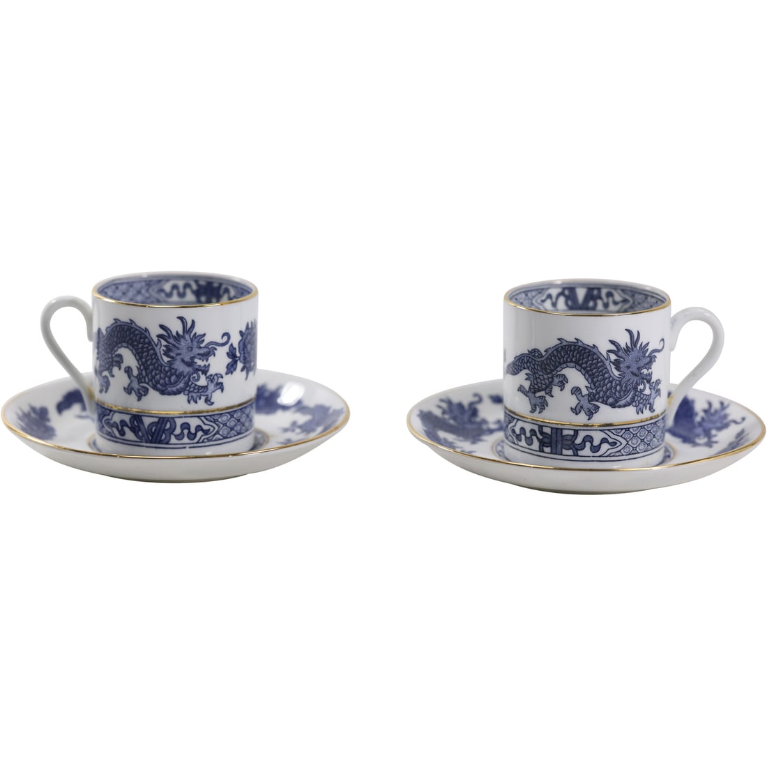 [2] Hammersley & Co DRAGON Blue and White Demitasse Cup and Saucer with Gold Trim