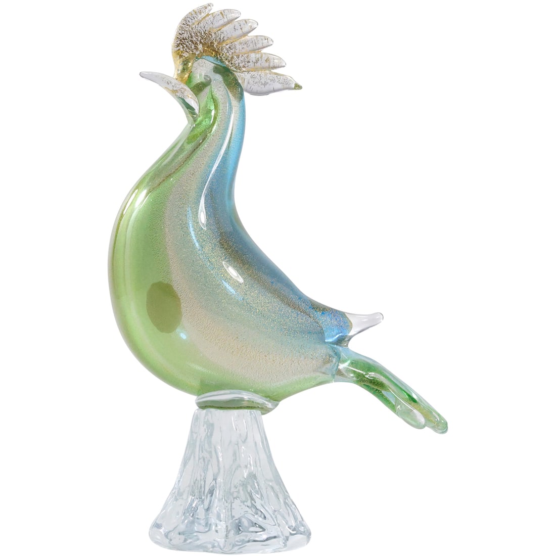 Vintage Mid-Century Modern Murano Art Glass Rooster Sculpture Multicolor with Gold Dust 9.75 in.