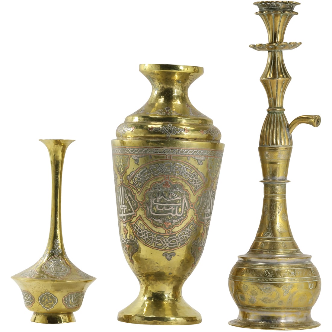 3 Assorted Vintage India Brass Items / Vases with Fancy Engraving - See Pictures