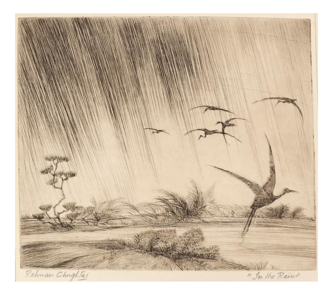 Abdur Rahman Chughtai, "In The Rain" - Etching