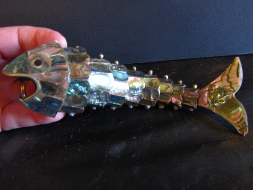 Abolone And Brass Fish With 10 Moveable Section 91t