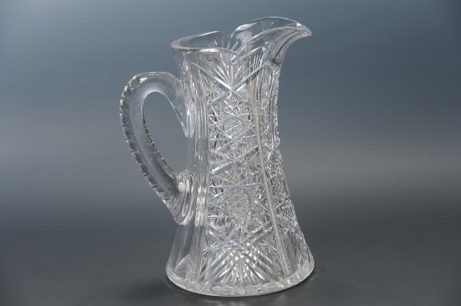 ABP HOBSTAR PATTERN CUT GLASS PITCHER