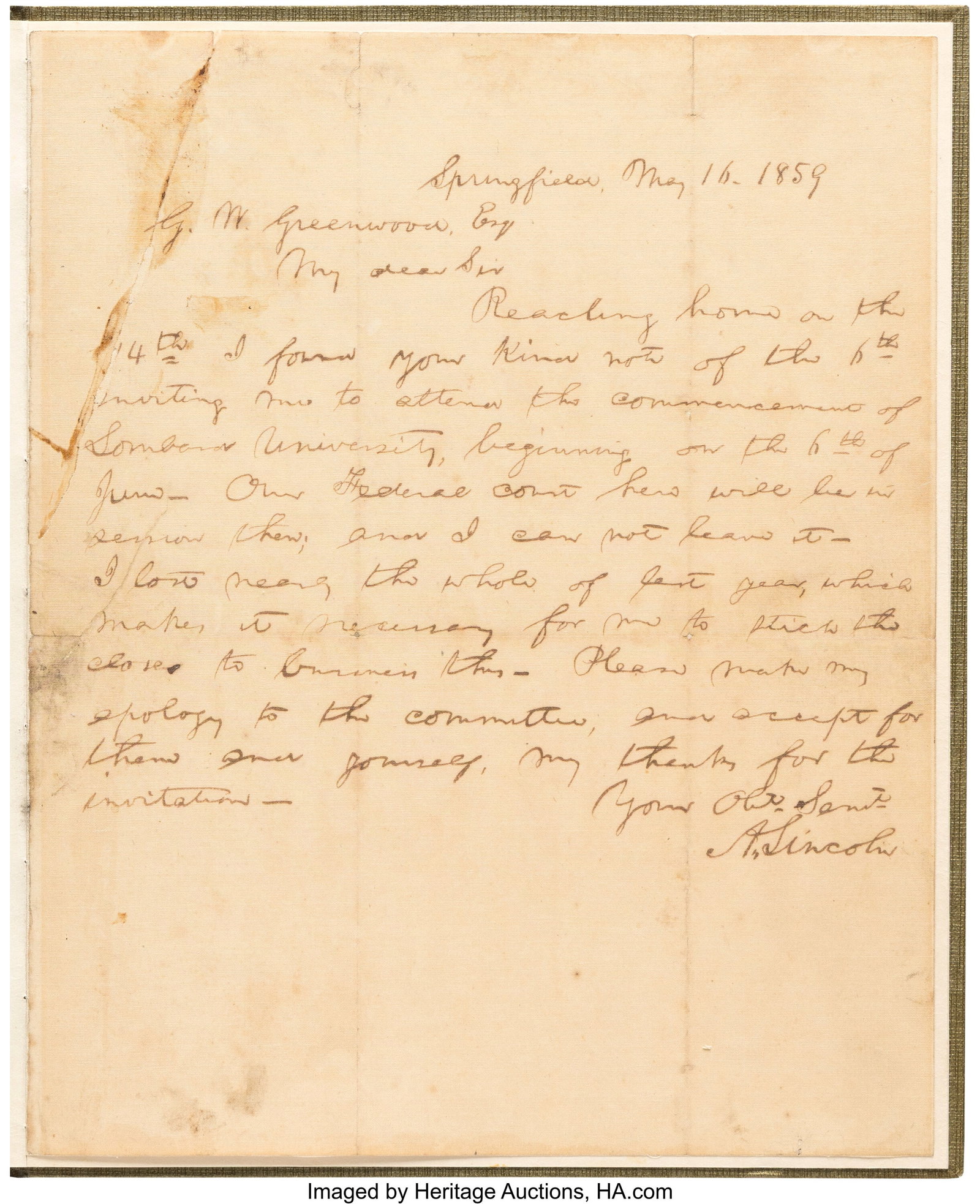 LINCOLN, Abraham (1809-1865). Autograph legal document signed twice ("A. Lincoln" and "AbrahamMar 26, 2026LINCOLN, Abraham (1809-1865). Manuscript document signed twice ("A. Lincoln"), [Springfield], 5Mar 26, 2026LINCOLN, Abraham (1809-1865). Manuscript document signed ("A. Lincoln"), [Springfield], 18 JuneMar 26, 2026LINCOLN, Abraham (1809-1865). Autograph letter signed ("A. Lincoln") to Garland B. Shelody [sicMar 26, 2026LINCOLN, Abraham (1809-1865). Autograph legal document signed ("Davis, Lincoln, Lamon"),Mar 26, 2026LINCOLN, Abraham (1809-1865). Manuscript legal document signed ("A. Lincoln") in the case of MaryMar 26, 2026LINCOLN, Abraham (1809-1865). Autograph legal document signed ("A. Lincoln"), [Tazewell County,Mar 26, 2026[LINCOLN, Abraham (1809-1865)]. Autograph endorsement, 8 lines, signed ("A. Lincoln") on the versoMar 26, 2026LINCOLN, Abraham (1809-1865). Autograph legal document signed ("Logan and Lincoln"), [ChristianMar 26, 2026LINCOLN, Abraham (1809-1865). A hitherto unpublished autograph memorandum, Washington, D.C., 22Mar 26, 2026LINCOLN, Mary Todd (1818-1881). Autograph letter signed ("Mary Lincoln") to Caroline Wright,Mar 26, 2026[LINCOLN ASSASSINATION]. THOMAN, John Adam (1838-1906). Autograph letter signed ("J. Thoman") toMar 26, 2026[Paulding, Hiram] Bainbridge, William. Autograph Letter, SignedLINCOLN, Mary Todd (1818-1882). Autograph letter signed ("M.L.") to Alexander Williamson, Chicago,Mar 26, 2026LINCOLN, Abraham (1809-1865). Autograph legal document signed twice ("Parks and Lincoln"),Mar 26, 2026LINCOLN, Mary Todd (1818-1882). Autograph letter signed ("M.L.") to Leonard Swett, Chicago, 13Mar 26, 2026
