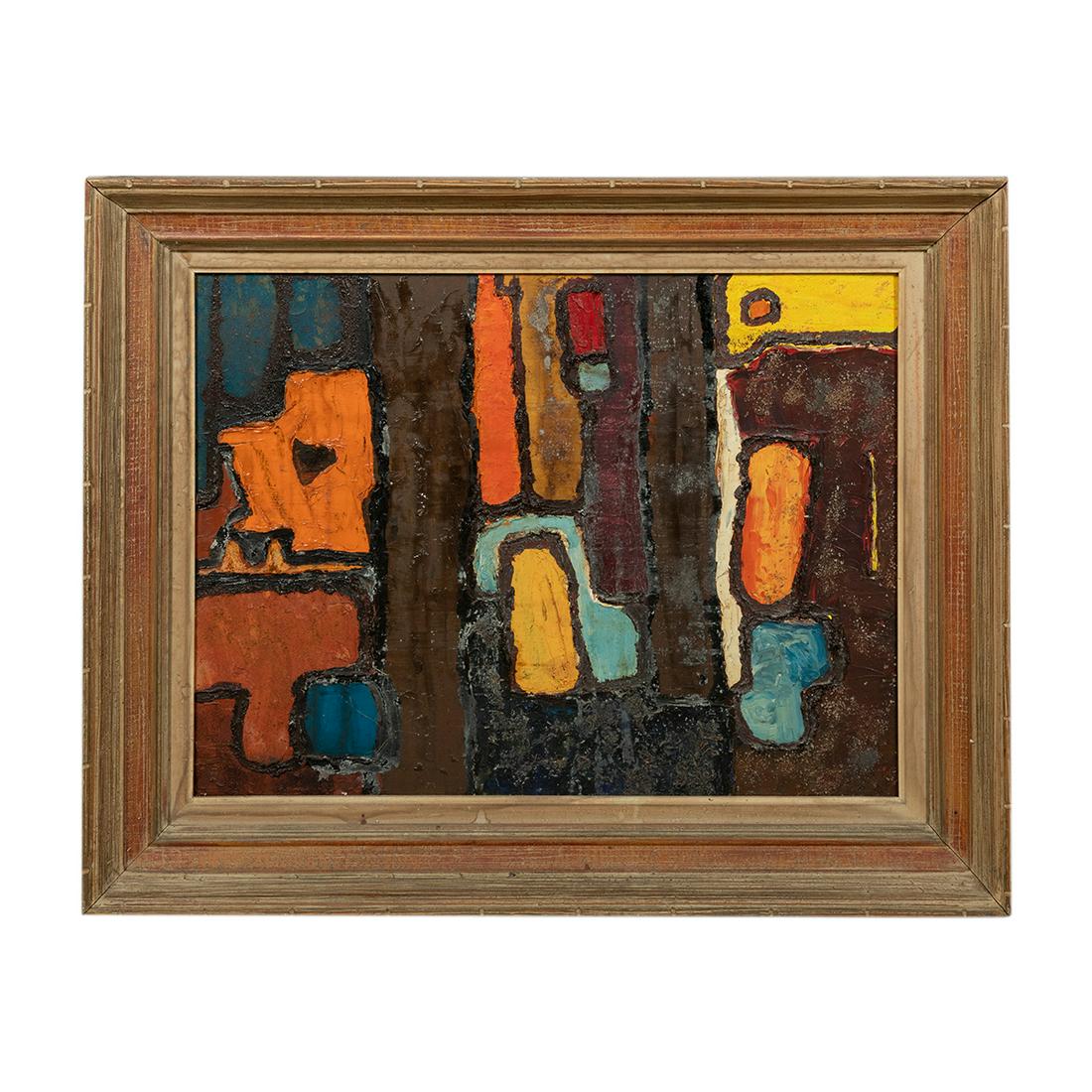 Vintage Abstract Oil Painting in Wood Frame with Linen Mat
