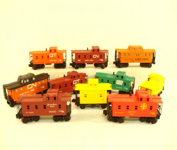 SoldLionel Postwar O Gauge Ten (10) Assorted Freight CarsLionel Postwar O Gauge Ten (10) Assorted Freight Cars, including 611925 orange - 6119 red cab - 3424 and others, including 6257 X2 cabooses in C7 minus; the 6462 Black Gondola X2 in C6 plus to C7 minuSee Sold Price