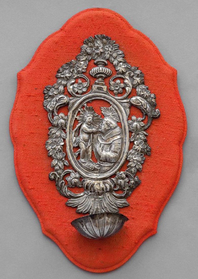 Acquasantiera in argento con Sant'Antonio e Il