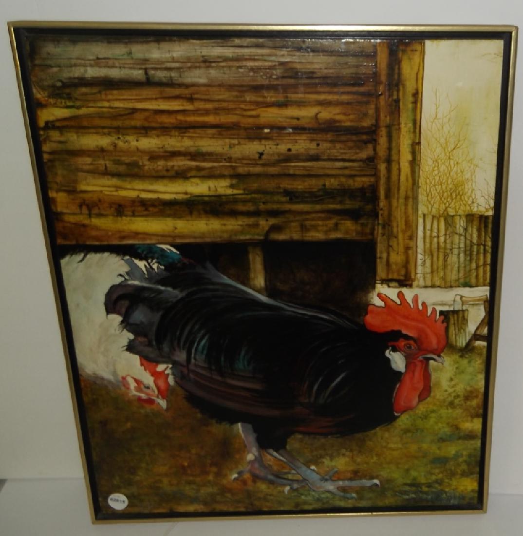Acrylic on board Roosters scene