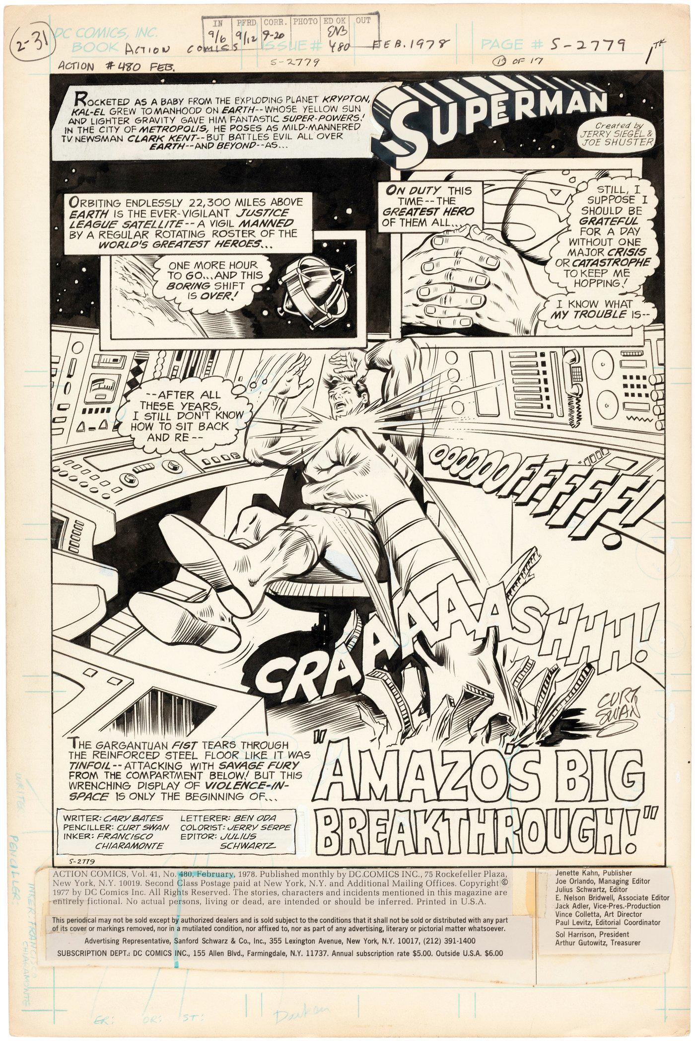 ACTION COMICS #480 COMIC BOOK TITLE PAGE ORIGINAL ART