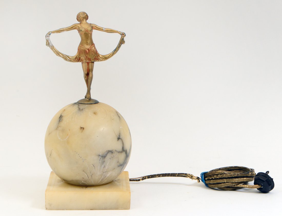 A/D ALABASTER & FIGURAL METAL SMALL TABLE LAMP