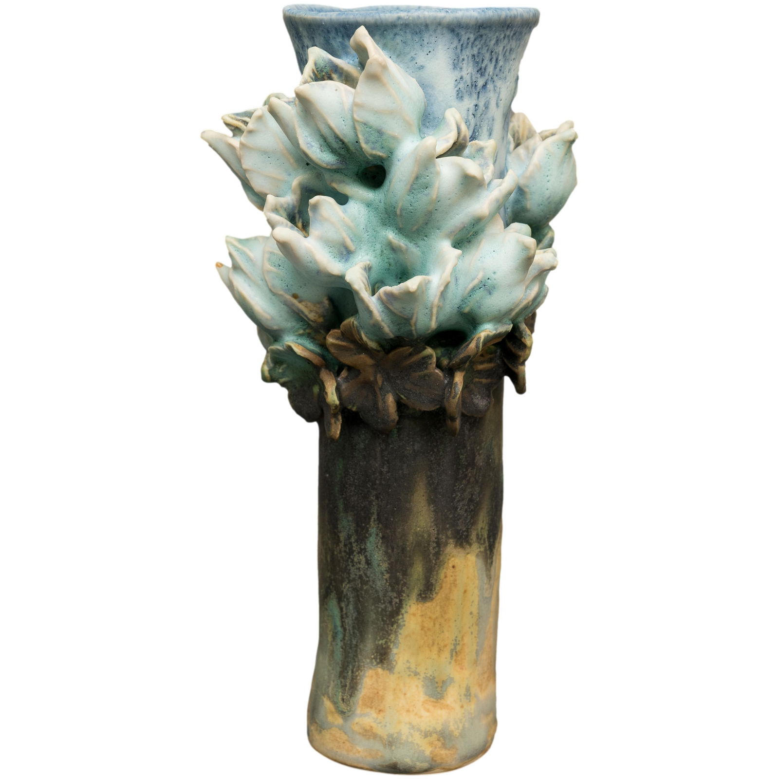 Rare Signed Matthew Solomon 2007 Ceramic Blue And White Flower Vase