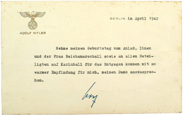 Adolf Hitler signed note spurious