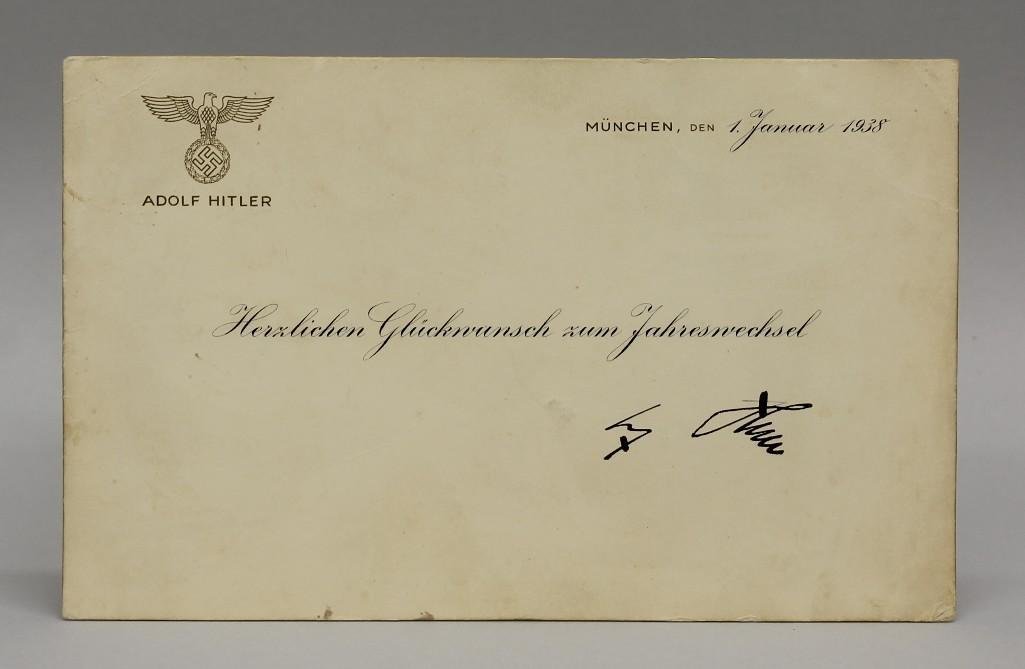 (32) GERMAN WWII OFFICIALS SIGNED NOTES, GORING FORMSFeb 21, 2026DER FUHRER ADOLF HITLER PERSONAL STATIONERY WITH POSTCARDFeb 21, 2026Rare Promotion Letter From the Reich Direction of the SS of the NSDAP Signed by Henrich Himmler 1934Feb 15, 2026German Propaganda Postcard With Adolf Hitler Artwork "Our Fuhrer" - 1943Feb 15, 2026German Propaganda Postcard With Portrait of Adolf Hitler As Liberator of Danzig - 1939Feb 15, 2026German Death Certificate Issued to a Panzer Grenadier of the Wehrmacht Who Fallen in the WW2Feb 15, 2026German Anti-Semitic Poster With Quotation by Adolf Hitler About the Jewish World DominationFeb 15, 2026Nazi Propaganda Postcard With Portrait of Adolf Hitler - Non-circulatedFeb 15, 2026Germany 1939 Bahnpost Postcard3 days LeftWWII TYPE GERMAN BOOK F ADOLF HITLER PERSONAL LIBRARYFeb 14, 2026Certificate Signed by Former Hitler's Adjuntant Julius Schaub Stating that a Coburg Badge Was WornFeb 15, 2026Nazi Propaganda Postcard Showing Portrait of Adolf Hitler Painting As Chancellor of the ReichFeb 15, 2026Commemorative Postcard of the Nuremberg Parteitag in 1938 - Entrance of Adolf HitlerFeb 15, 2026Hand Signed by Adolf Hitler Rare Promotion Document to Legation Councillor Dated in 1936Feb 15, 2026WWII German Wehrmacht Driver's License (1944)3 days LeftPolice Promotion Document Signed by Wilhelm Frick's Right Hand Pfunchner - 1936Feb 15, 2026