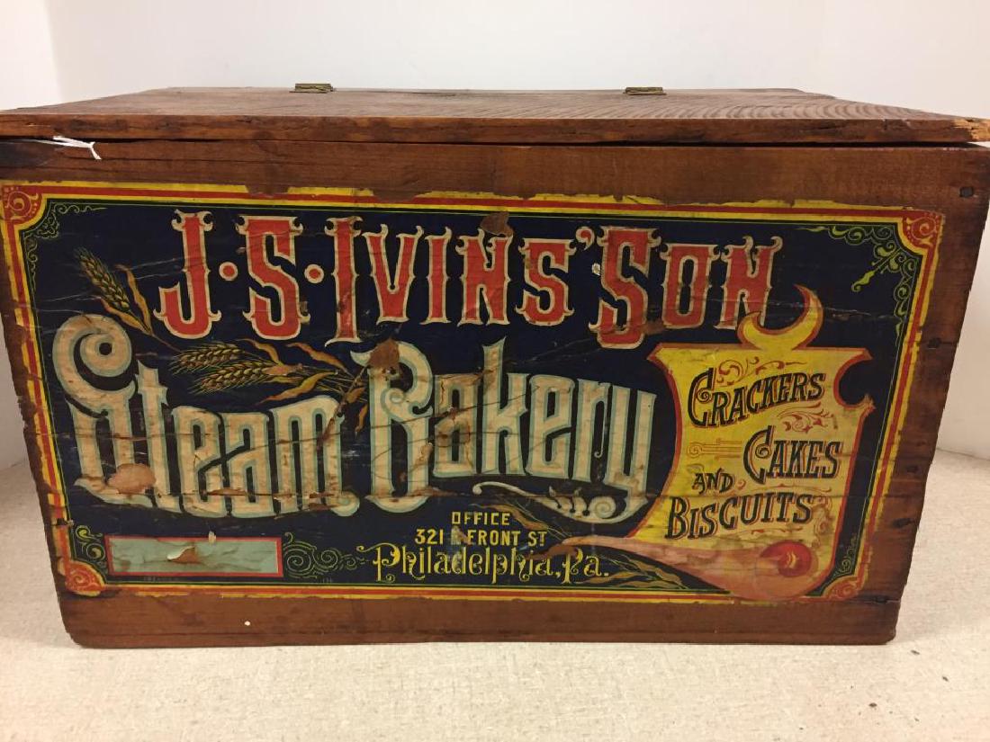 2 Peter's Victor Wooden Ammunition Boxes2 Peter's Cartridge Company Wooden Ammunition BoxesAntique C.F. Blanke Tea and Coffee Company Exposition Brand Green Tin Coffee BinORIGINAL R. OVENS BAKERY CAKES, CRACKERS & BISCUITS SHIPPING CRATEFeb 19, 2026TIGER BRAND LAUNDRY STARCH SHIPPING CRATEFeb 19, 2026ORIGINAL JACKSON LIQUID GLUE SHOWCASE FULL OF OLD STOCK BATHING SOAPFeb 18, 2026Personalized Jimmy Carter Wood Box of Hunting Related MiscellaneaFeb 25, 2026COLLECTION OF 5: BISCUIT TINS & BISCUIT TIN FRONTSFeb 19, 2026Pennsylvania Blanket Chest, old red paint on poplar, brass fittings, dovetailed, on ChippendaleFeb 24, 2026COLLECTION OF 5: WOODEN CIGAR BOXES & CARDBOARD CIGAR DISPLAYFeb 19, 2026Paint decorated Pennsylvania lift top blanket chest, dovetailed, painted floral panels, early lockFeb 24, 2026COLLECTION OF 3: WOODEN CIGAR BOXESFeb 19, 2026Sweet Cuba Tobacco Advertising Cardboard Litho Tin5 days LeftCARDSTOCK ADVERTISING FOR THE INTERNATIONAL FOOD COMPANY HARNESS SOAPFeb 18, 2026Vintage Boys Treasure Las Vegas Wooden Souvenir Trinket Box3 days LeftWm. Miller Flag & Bunting Decorating Crate1 day Left