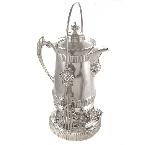 ENGLISH SILVER LUSTRE CERAMIC TEA AND COFFEE ARTICLES, LOT OF SIX5 days LeftSterling Queen Anne Style Teapot, 19th CenturyMar 10, 2026George III Sterling Silver Coffee PotMar 16, 2026Antique Silverplate Baluster Coffee PotMar 17, 2026English Silverplate Repoussé Coffee UrnMar 07, 2026AMERICAN SILVER PLATED WATER PITCHER W SQUIRREL FINIAL2 days LeftFrench Silver Coffee PotMar 16, 2026Wood and Hughes Medallion 900 Coin Silver Coffee Pot 12 Inch20 hrs LeftAn Elizabeth II sterling silver coffee pot4 days LeftGeorge II Sterling Silver Kettle on StandMar 16, 20264 Piece Silver Plate Tea Set5 days LeftFrench Bointaburet Paris sterling silver chocolate pot. Relief floral and leaf decoration. Reed2 days LeftUnion Pacific Railroad "Overland Route" Silver Glass Water Carafe7 days LeftDavid Andersen Silver Covered TankardMar 16, 2026Continental Gothic Style Silver-Mounted Cut-Glass Wine CarafeMar 12, 2026Missouri Pacific Lines Railroad Silver Glass Water Carafe7 days Left