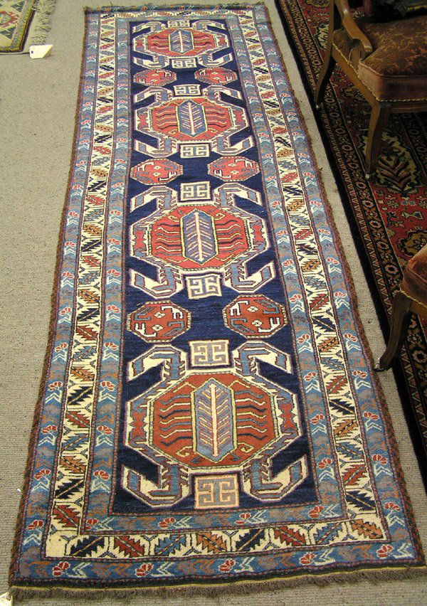 Sold2pc Afghani Carpet Rug and RunnerAfghanistan 20th Century Runner with repeating block pattern with diamond border and flat weave ends. Smaller rug with repeating central pattern and geometric border. 8'9" x 2'.4'1" x 2'8",Wool From tSee Sold Price