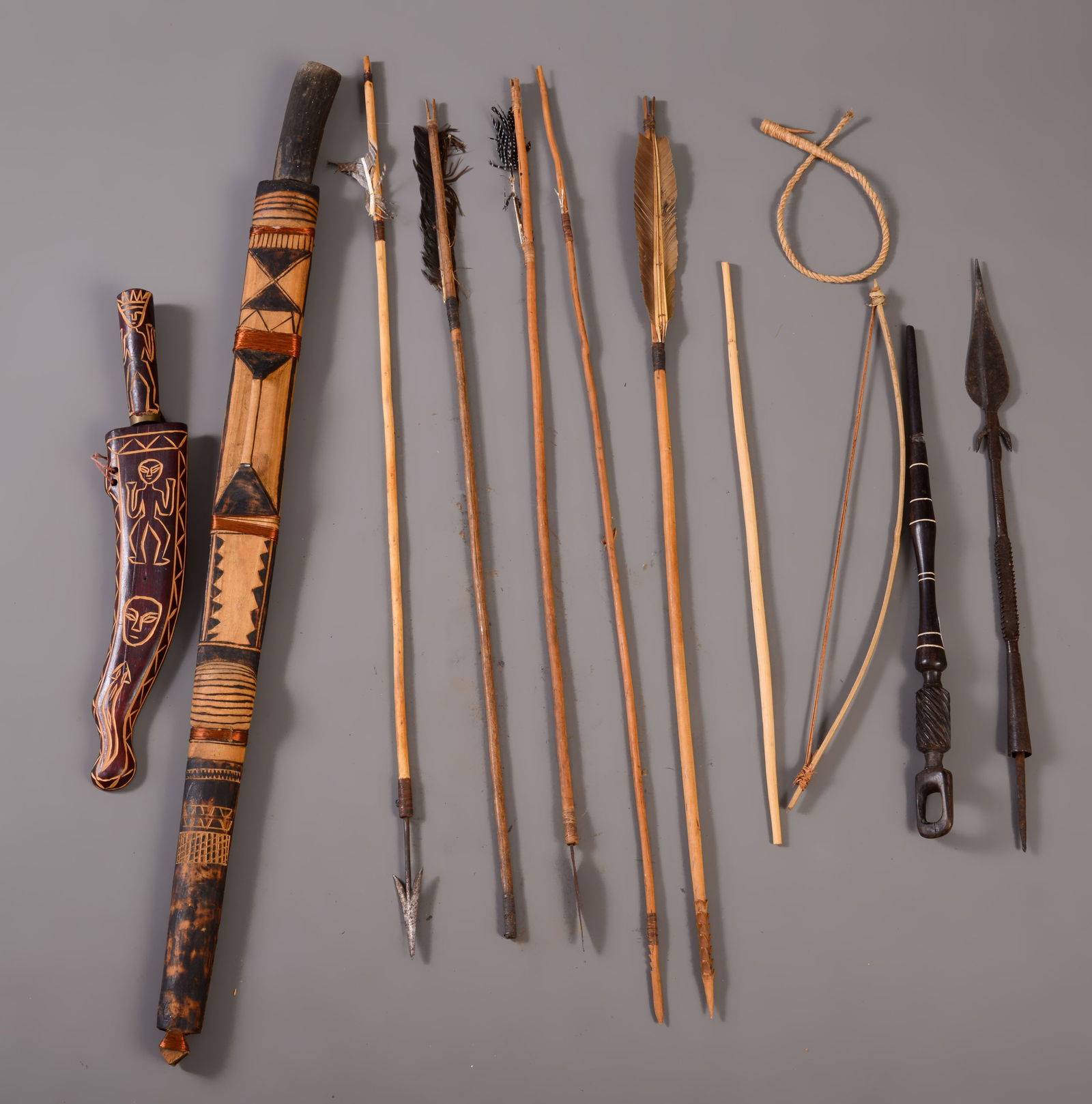 AFRICAN BOW AND ARROW, SWORD AND A DAGGER