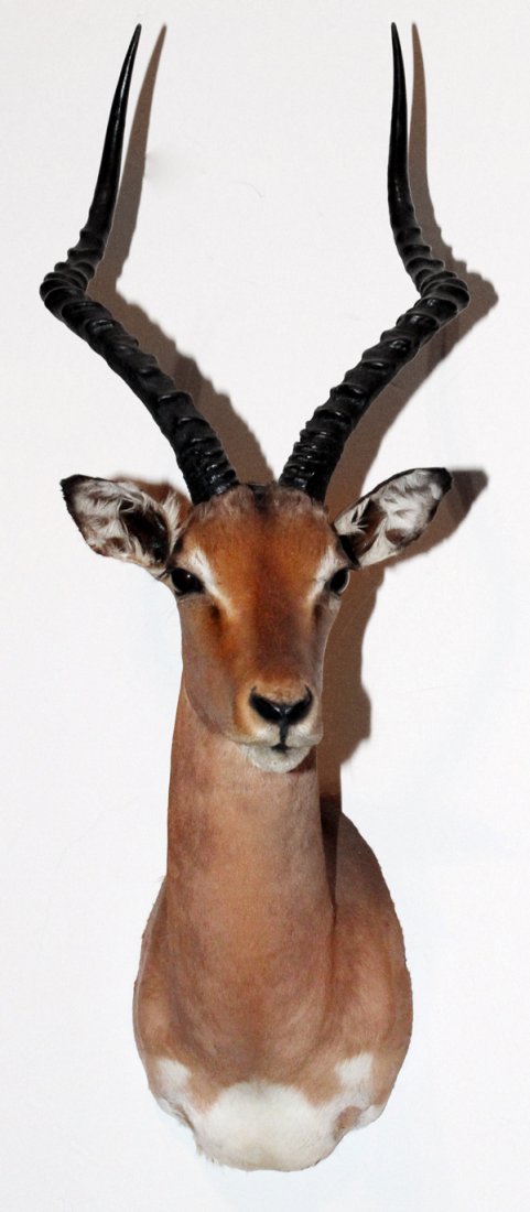 SoldAfrican Impala Ram Shoulder Taxidermy MountThis is a mature and average size Southern Impala Ram. The mount is clean and in excellent condition with taxidermy that grades a solid 9.See Sold Price
