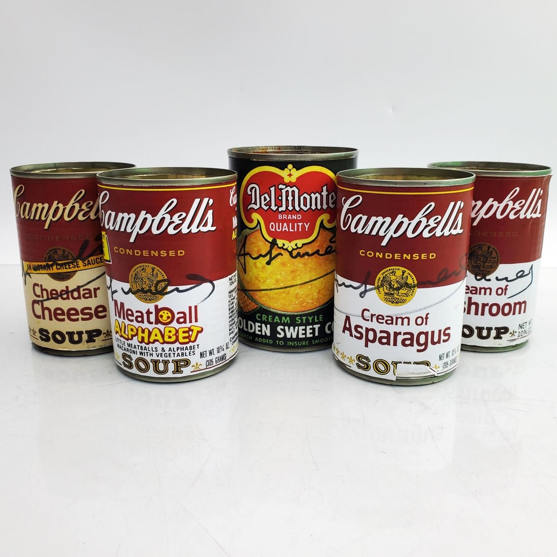 After Andy Warhol 5 Signed Campbell/Del Monte Cans