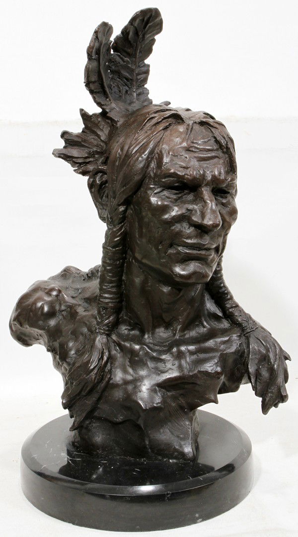 Authentic Native American Warrior Chief Bronze Bust Sculpture On Marble Base - Signed By Artist -Weatherham Estate Treasures4(226)$6507 days Left