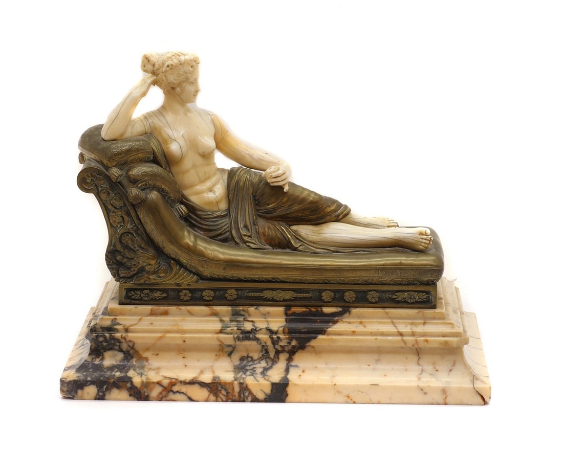 A LARGE GLASS INLAID AND GILDED ALABASTER FIGURE OF THE RECLINING BUDDHA, MANDALAY PERIOD, 19THMar 11, 2026Chalkware Lounging Classical Woman FigurineMar 05, 2026Fine Neoclassical Marble sculpture Antonio Canova VenusMar 08, 2026Canova Inspired Nude Female Greek Goddess Bronze Sculpture - 13" x 19"Jul 22, 202519th C. Continental Marble Sculpture of Venus de Milo5 hrs LeftHand Carved White & Pink Marble Seated Woman on Black Marble BaseMar 01, 2026An Italian carved alabaster bust of the Venus ItalicaMar 10, 202618th Century French Bronze Sleeping Child Sculpture on Marble BaseMar 01, 2026Venus Victrix , A Vintage Capodimonte After Canova Hand Painted Figurine, Artist Signed5 hrs LeftLeon Pilet "Cleopatra" Patinated Bronze, 19th C.Mar 19, 2026Late 19th C. Italian Carved Alabaster Figural Odalisque6 days LeftCanova Inspired Nude Female Greek Goddess Bronze Sculpture - 13" x 19"Jul 15, 2025An antique carved alabaster marble sculpture bust of a lady3 days LeftANTONIO CANOVA | GROSSE PAULINE BONAPARTE ALS 'VENUS VICTRIMar 14, 2026After Antonio Canova "Venus Italica" Sculpture - (8.8lbs)Mar 12, 2026After D.H. Chiparus Cleopatra Patinated BronzeMar 19, 2026